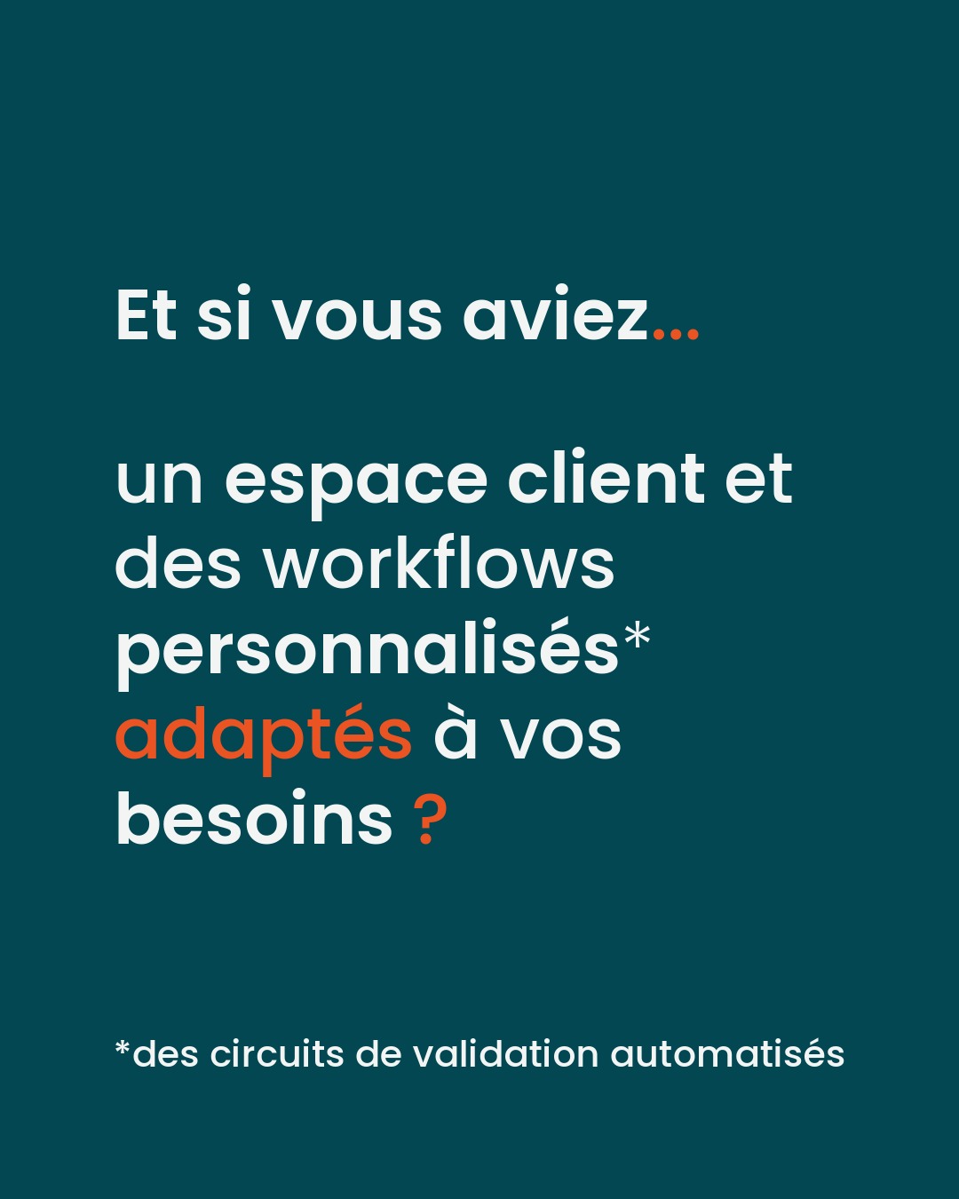 Dans votre espace client, nous mettons en place des workflows personnalisés, adaptés à vos besoins.